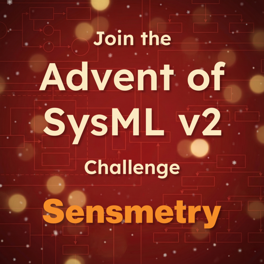 Free 24-day learning challenge for systems engineers, delivering a new SysML v2 lesson and hands-on exercise every day — from language fundamentals to common use-cases and workflows.